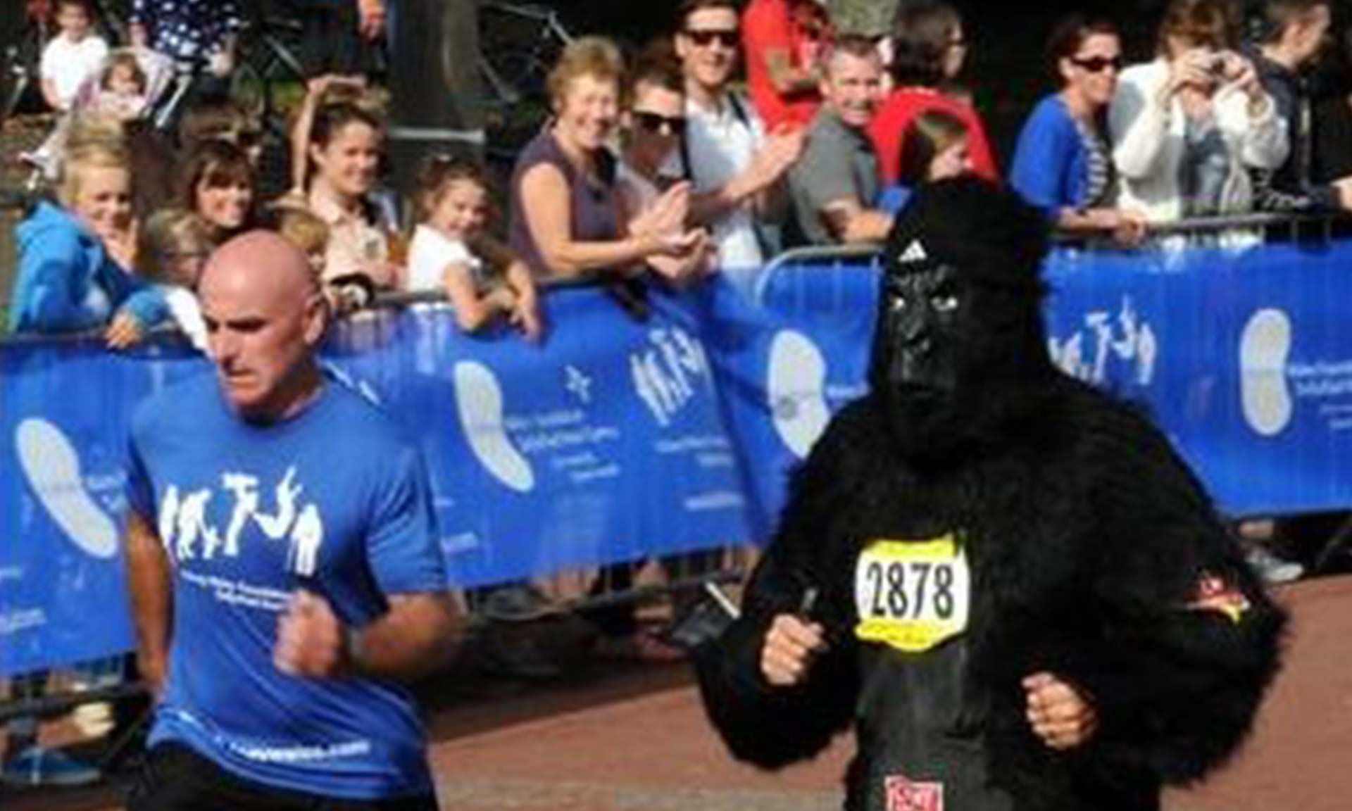 Imagine how hot it gets running a 10K race, now imagine doing that in a gorilla suit...!